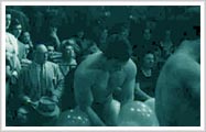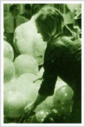 Collage de acciones interpretadas por musculosos, un grupo de rock, mujeres gordas, caballos, gallinas, parejas de novios atados, globos y pintura.