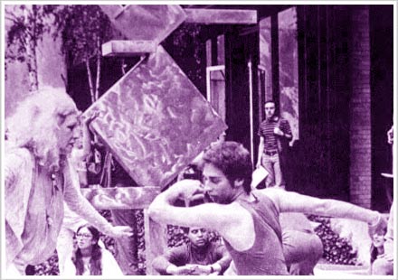 Se invita a los visitantes del museo a pasar a través de un corredor con sonidos de alta frecuencia para llegar a una "arquitectura invisible" creada con ondas ultrasónicas por Juan Downey. Los participantes se sientan en triángulos dibujados y numerados, y recitan frases al unísono con los guías que circulan alrededor de ellos.