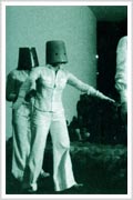 Museo de Arte Contemporáneo. San Pablo. Brasil. 20 personas vestidas de blanco y con un balde verde en la cabeza, ordenan repollos en un cuadrado trazado en el piso mientras entonan una canción que conjuga el arte con la naturaleza.