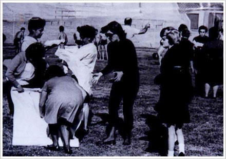 Estadio Peñarol. Montevideo. Uruguay. A través de los periódicos uruguayos, Marta Minujin convoca a la gente a participar de un "Suceso Plástico" en el estadio de Peñarol en la capital uruguaya. Cuando la gente entra, los rodean un grupo de motociclistas y 20 coristas comienzan a besar a los hombres mientras 20 musculosos levantan a las mujeres y las vuelven a depositar en el piso. A su vez, el espacio está atravesado por gordas que ruedan por el piso y parejas de novios atados con cinta adhesiva. Todo se realiza con una misa de Bach resonando a todo volúmen por los parlantes. Minujin llega al estadio con un helicóptero y comiena a arrojar harina, lechuga y 500 pollos vivos sobre los participantes. A los 8 minutos suena una sirena y se invita al público a retirarse.
