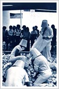 Museo de Ciencias y Arte de la Universidad de Mexico. Mexico D.F. 20 personas ordenan toronjas en un cuadrado trazado en el piso mientras entonan una canción que conjuga el arte con la naturaleza.