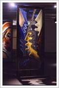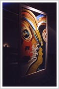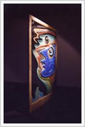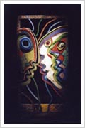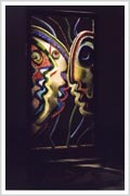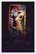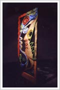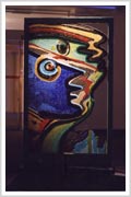 Los Vidrios, mi trabajo actual, están inspirados en los graffiti de la calle. Esas caras múltiples que dicen que "somos muchos en uno". Están realizados con miles de particulas de vidrios e colores, las venecitas de Murvi.